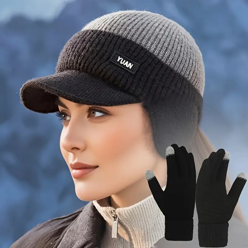 TEMU 2개 세트 겨울용 보온 이어워머 모자 & 장갑 - 남녀공용 방풍 야외 스키, 사이클링, 추운 날씨용 - 스트레치 핏 스너그 캡 포함 (손세탁 가능) - 캐주얼 겨울용