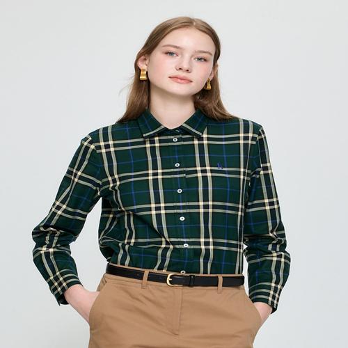 헤지스 여성 베이직 체크 셔츠 다크그린 (HSSH5DC82E3)