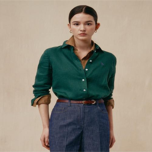 헤지스 여성 [시즌오프][아이코닉] 린넨 셔츠 그린 (HSSH5BC30E3)