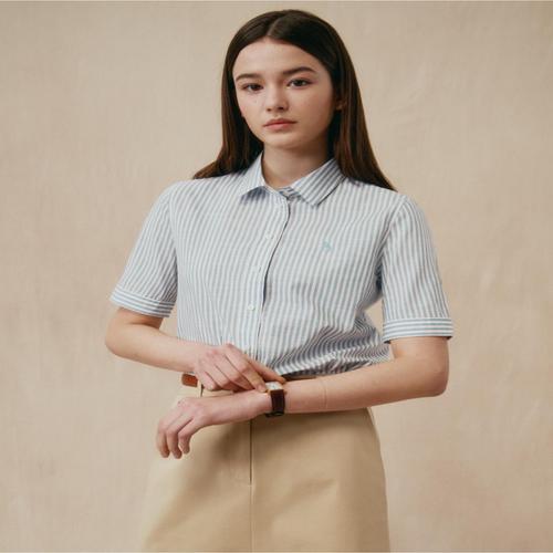 헤지스 여성 스트라이프 면 반소매셔츠 라이트그린 (HSSH5BC46E1)
