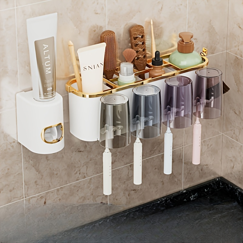 TEMU 1개 칫솔 거치대 + 가글컵, 자동 치약 디스펜서, 벽걸이 칫솔 보관대, 2개의 화장품 서랍이 있는 칫솔 정리대, 칫솔 거치대 & 욕실 텀블러, 욕실 액세서리, 홈 데코