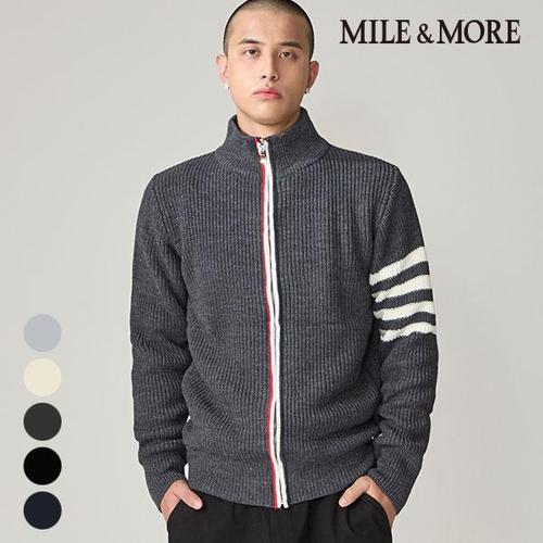 [마일앤모어] 크루 배색 남성 집업 니트 가디건 자켓