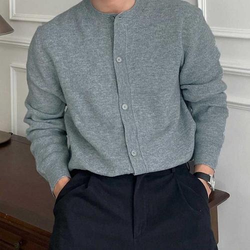 록쉬블몰 남자 니트 캐주얼 빈티지 가을 셔츠 솔리드 긴팔 카디건 HO3