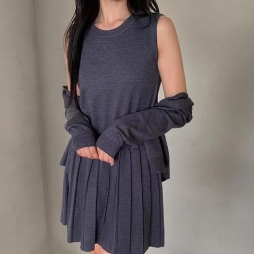 [미라클세븐]여성 민소매 니트 롱드레스 라운드넥 가을 가디건 세트