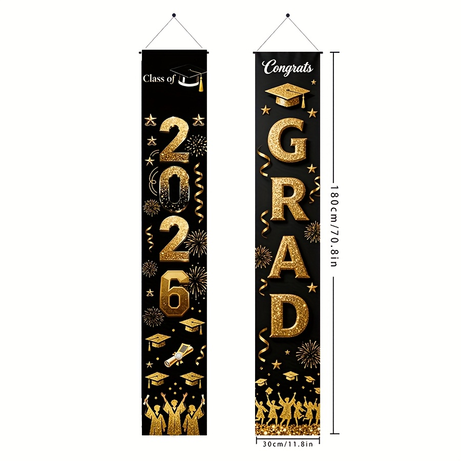 TEMU 2026년 졸업 시즌 축하용 대련 1쌍, 블랙과 골든 졸업 시즌 현관 배너, 재질 제작, 축제 장식, 가족 모임, 졸업 시즌 장식