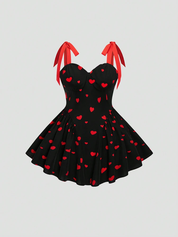 TEMU 2025 크로스보더 유럽 및 미국 가을/겨울 시즌 러브 프린트 레이스업 캐주얼 긴팔 로브 루즈핏 여성용 라운지웨어|여성원피스|가을원피스