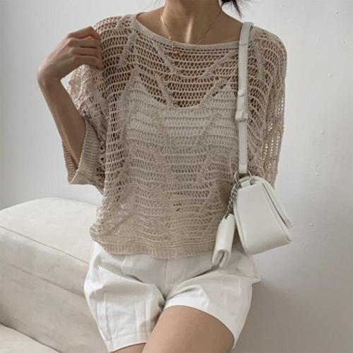 여자 가오리반팔 레이어드용 스카시 SS 니트