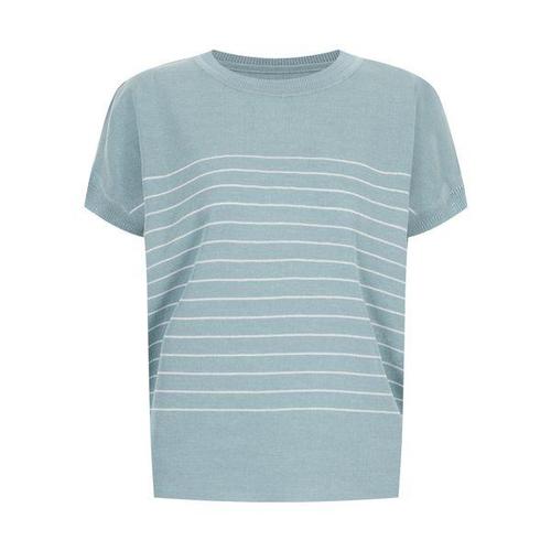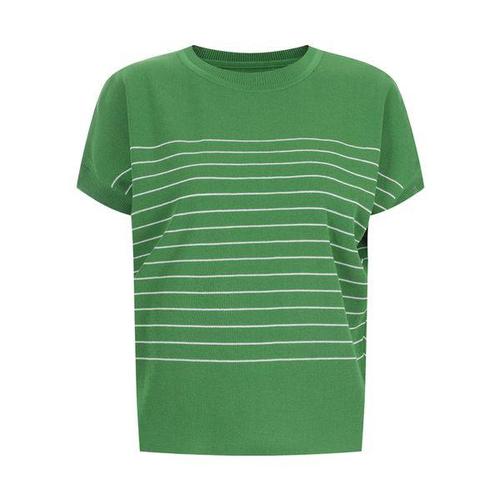 [샵앤]국산 여성 라운드넥 단가라 까슬 가오리핏 반팔 니트티 BOM-WKN-20656-그린