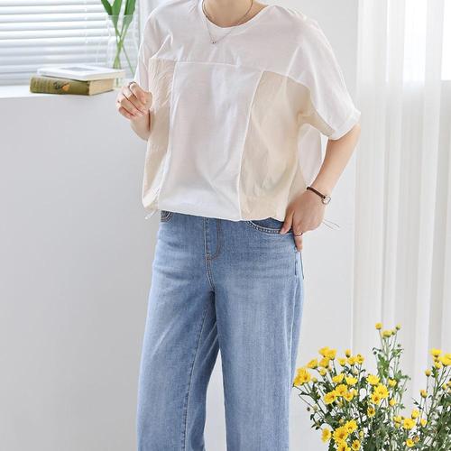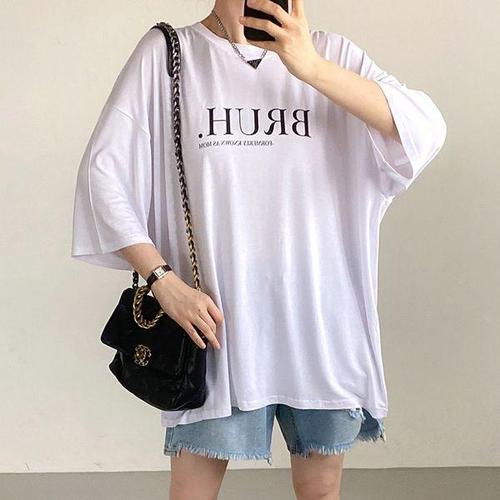 [옷자락] 여성 면혼합 신축성 가오리형 반팔 루즈핏 티셔츠