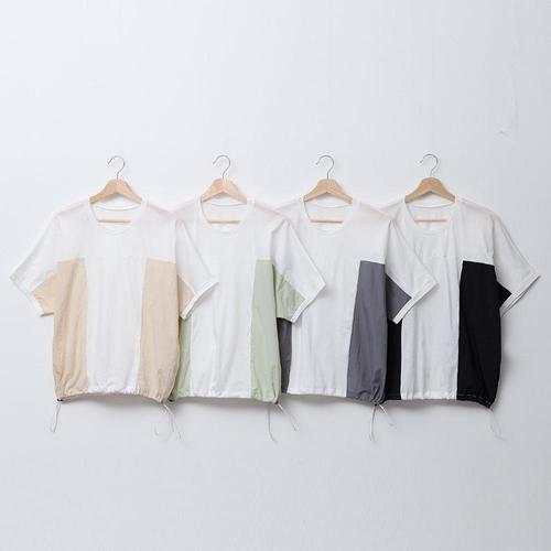 [옷자락] 여자 파스텔 투톤 스트링 박스 가오리핏 반팔 티셔츠