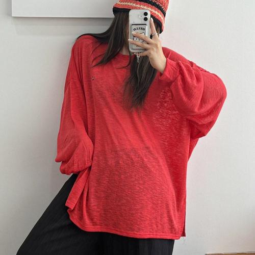 데일리앤 브레아 여성 봄 브이넥 루즈핏 긴팔 가오리 박스 롱 티셔츠