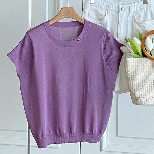 [샵앤][샵앤] 여성 라운드넥 가오리핏 여름 니트 티셔츠 DGB-WKN-4549-바이올렛