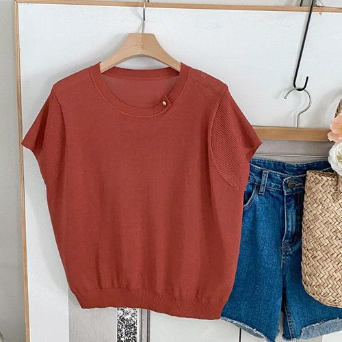 [샵앤][샵앤] 여성 라운드넥 가오리핏 여름 니트 티셔츠 DGB-WKN-4549-오렌지