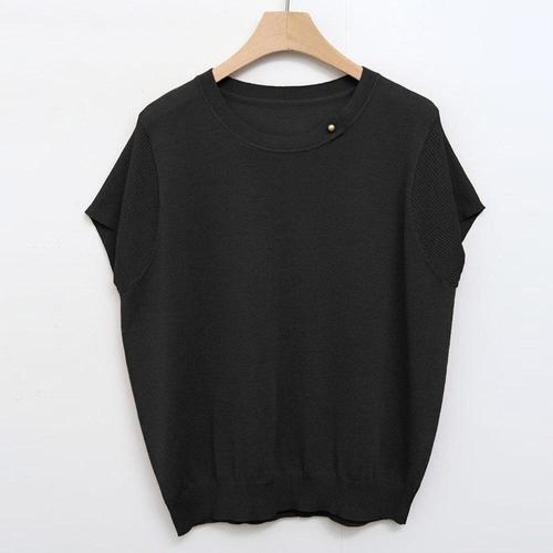 [샵앤][샵앤] 여성 라운드넥 가오리핏 여름 니트 티셔츠 DGB-WKN-4549-블랙
