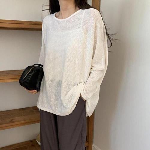 [옷자락] 여자 가오리핏 라운드넥 오버핏 시스루 긴팔 티셔츠