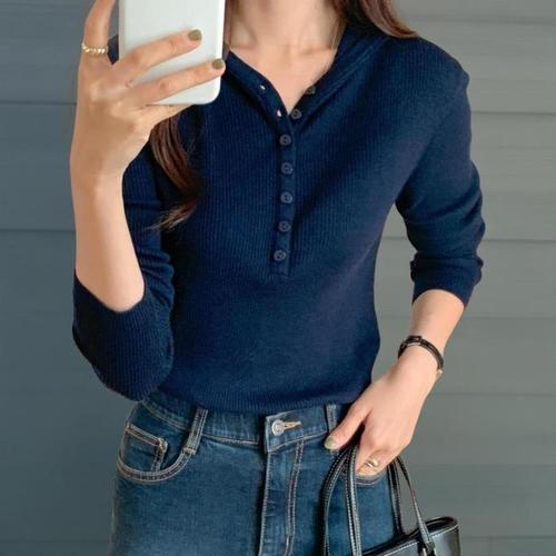 룩플레인 국내생산 세련된 맨투맨 니트 카라 티셔츠 10color