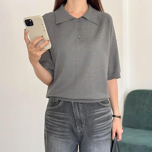 [다잇템]여자 민무늬 카라넥 일상룩 가을반팔티 니트 (41284387A)