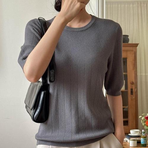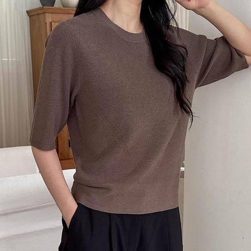 [다잇템]여자 환절기 가을컬러 반소매티 골지 U넥 니트 (41095834A)