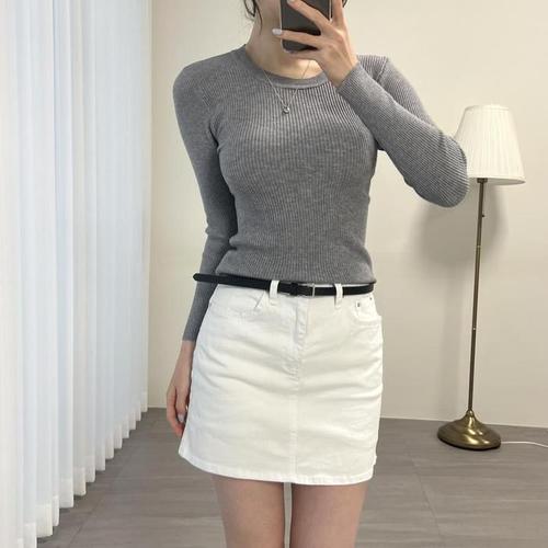 [다잇템]여자 베이직 골지 U넥 가을긴팔티 슬림핏 니트 (41340279A)