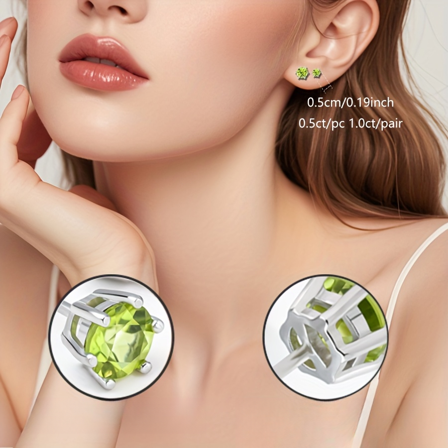 TEMU 우아한 천연 페리도트 귀걸이, 0.75x2 총 1.5캐럿 / 0.5x2 총 1캐럿 천연 페리도트, 클래식 식스프롱 토치 디자인, 실버리 무게 0.85그램, 남녀공용, 우아한 파티 가을 겨울 데일리 액세서리