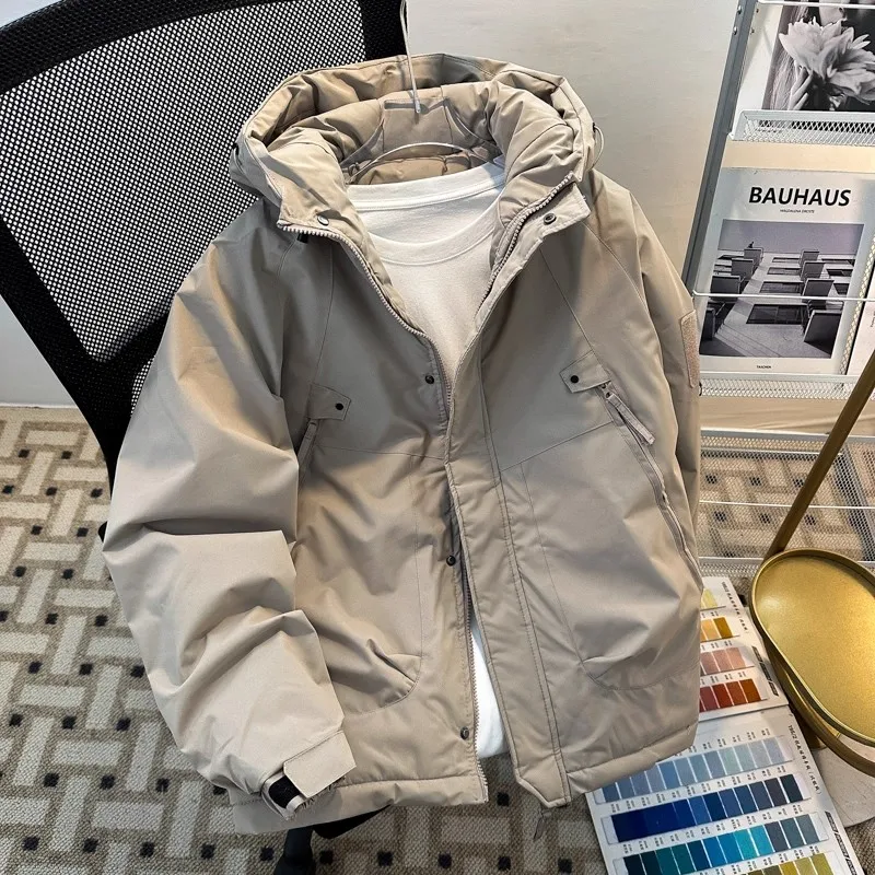 남성용 후드 화이트 덕 다운 재킷, 따뜻한 두꺼운 퍼퍼 재킷 코트, 남성 캐주얼 오버코트, 보온 파카, 남성 아웃웨어, 가을 겨울