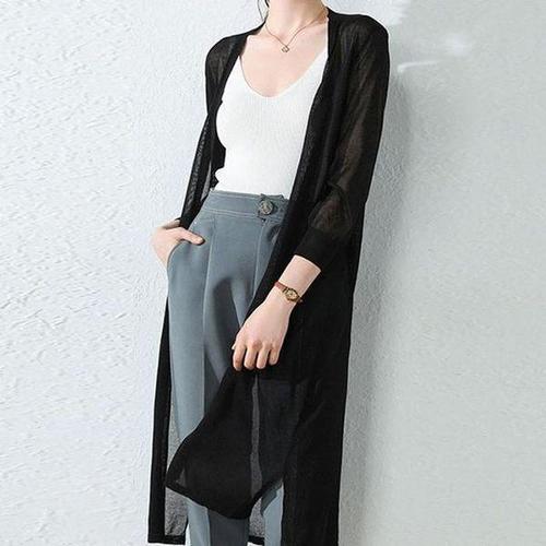 [에이치플러스몰]여성 긴 기장감 데일리륵 오피스룩 간절기 봄가을 시스루 롱 가디건