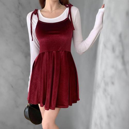 [옷자락]여자 가을 겨울 연말 파티 벨벳 셔링 끈나시 미니원피스