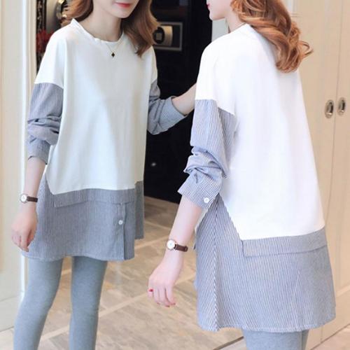 신상 티셔츠 여자니트티 기본핏 라운드 가을 모임 롱 WFKXZTU