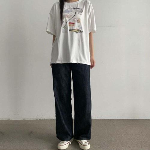 [셀럽하우스]티 OJJR3476 여성프린팅 얇은 반팔티 FR1618105 신상 여성 가을