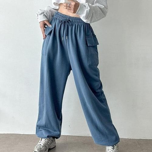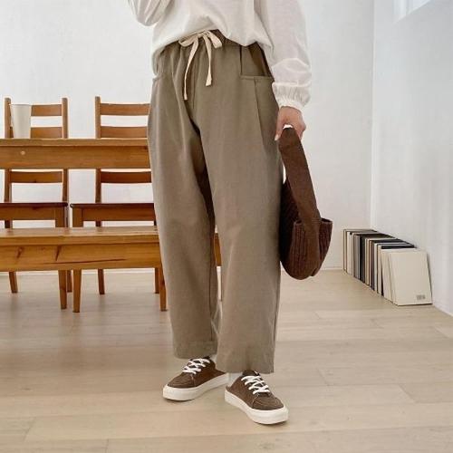 [옷자락]여성 잔골지 롱바지 가을 데일리 스타일 끈밴딩 루즈핏