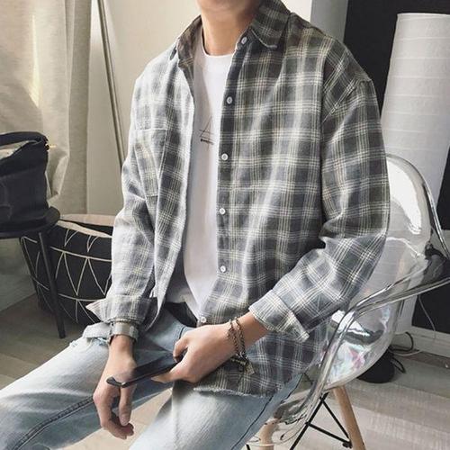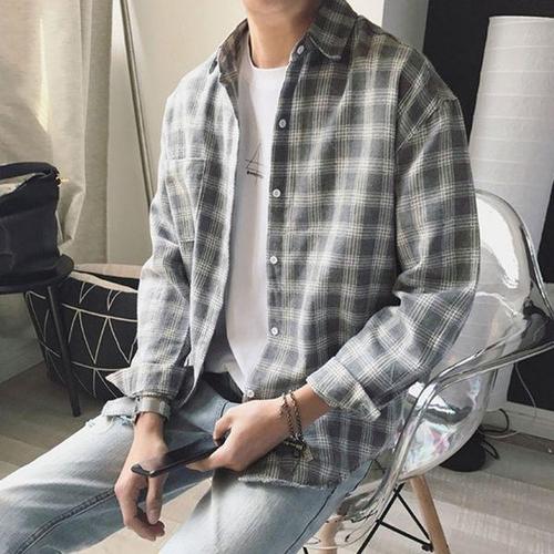 [에이치플러스몰]남성 댄디한 오버핏 체크셔츠 긴팔 체크남방 봄 가을