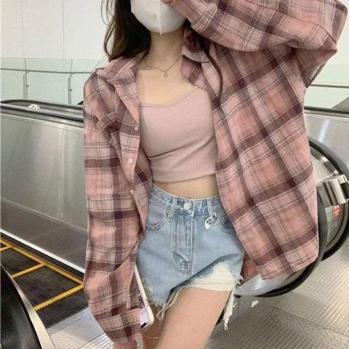 [셀러허브_여성트랜드패션]ONM 여성 가을 체크셔츠 봄 예쁜 여리여리 남자봄셔츠