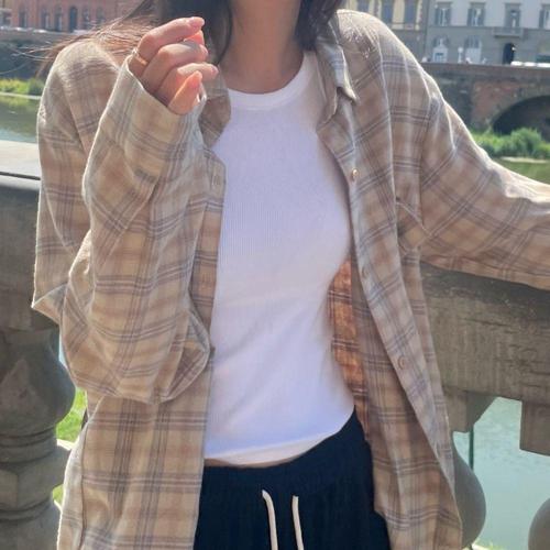 여성 봄 가을 체크셔츠 루즈핏 데일리 색상예쁜 남방 WFM5ZS6