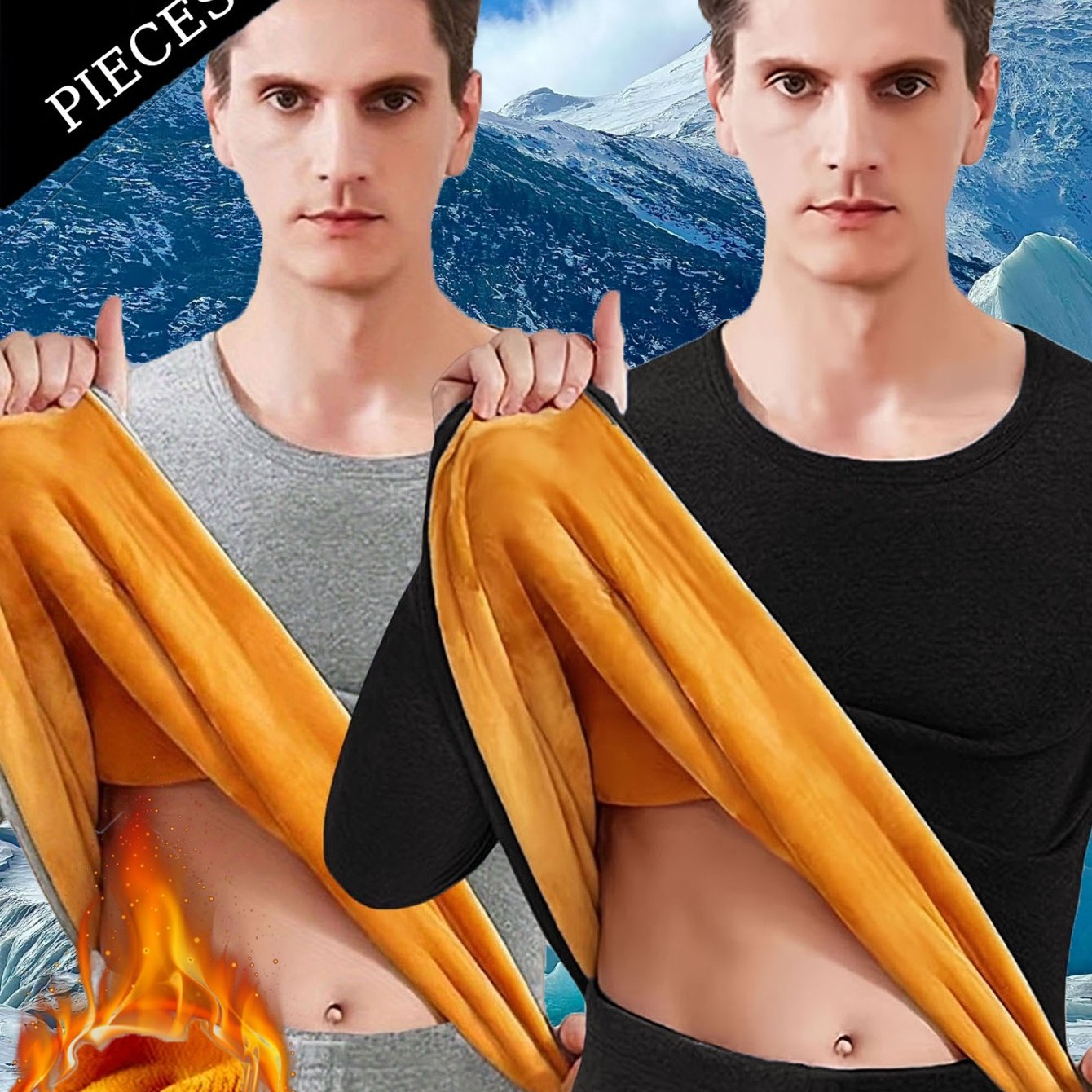 TEMU 2개 남성용 기모 긴팔 상의 - 헤비웨이트 겨울 런닝 & 헬스 운동 셔츠, 슬림핏 운동복 트레이닝 탑, 스탠드 칼라, 두꺼운 따뜻한 베이스 레이어, 추운 날씨 운동용 (손세탁 가능) - 러닝, 헬스에 적합|헬스복