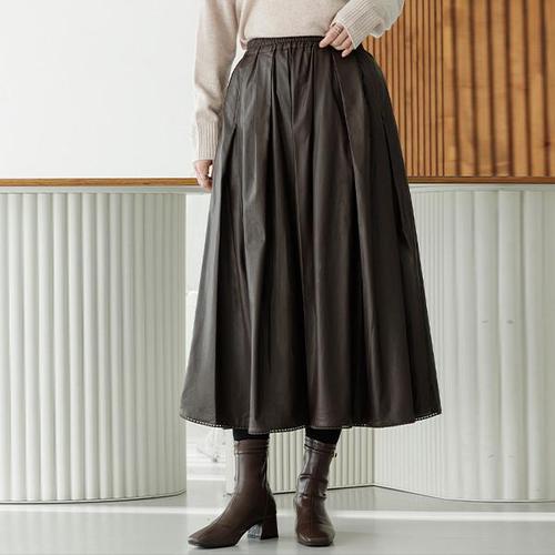여성 플리츠 가죽치마 미디 스커트 가을 겨울