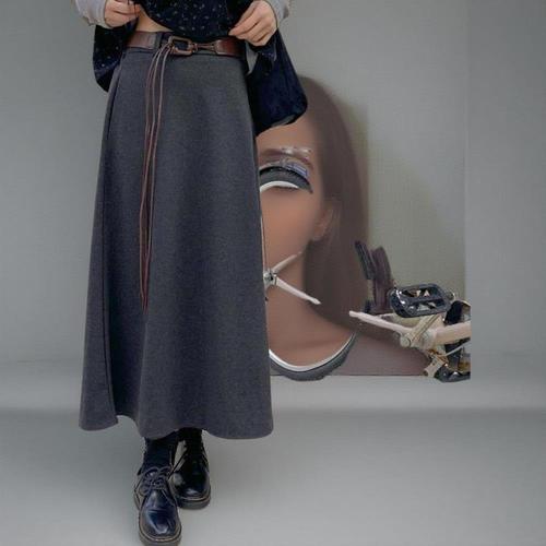 [미라클세븐]여성 A라인 롱 스커트 가죽벨트 세트 플레어 디자인