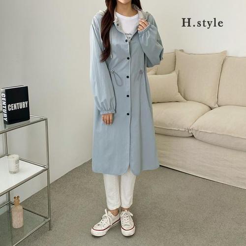 [에이치플러스몰]여자 야상점퍼 봄 가을 스트링 바람막이 후드집업 간절기아우터 자켓 미디움 롱 집업자..