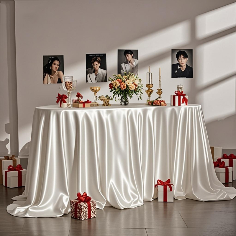 TEMU 부드러운 광택과 매끄러운 유광 마감, 심리스 질감의 파티 식탁보. 다양한 옵션 제공, 직사각형 테이블 전용으로 특별 설계, 재사용 가능