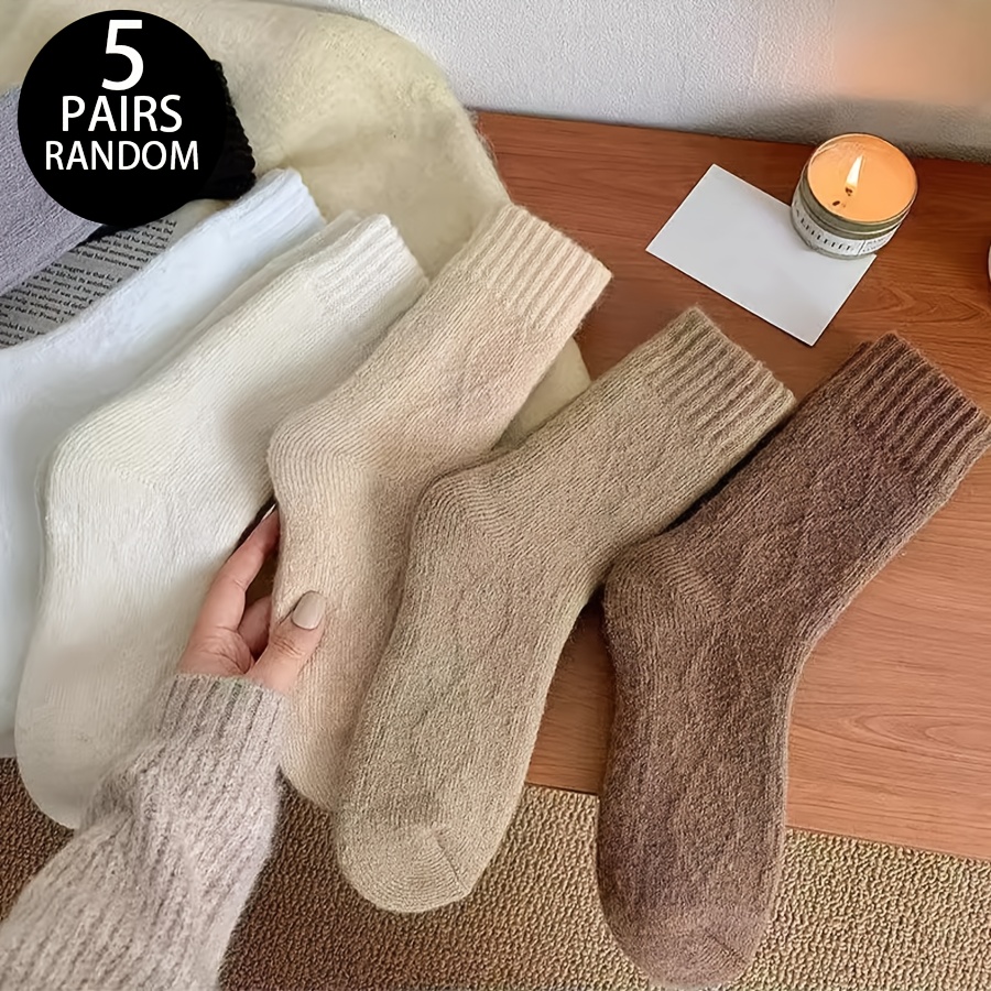 TEMU 랜덤 5켤레 여성용 중목 양말, 겨울 플러시 양말, 가을/겨울용 여성용 도톰한 중목 양말, 보온 발열 긴 양말, 테리클로스 산후 양말, 일상용 수면 바닥 양말