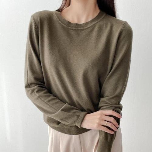 [다잇템]여자 라운드넥니트 기본핏 갈색 티셔츠