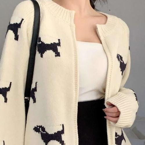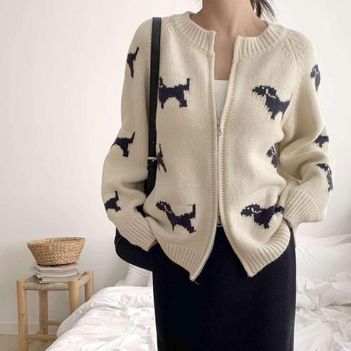 [디자이너몰]여성 겨울 강아지 투웨이 니트 집업
