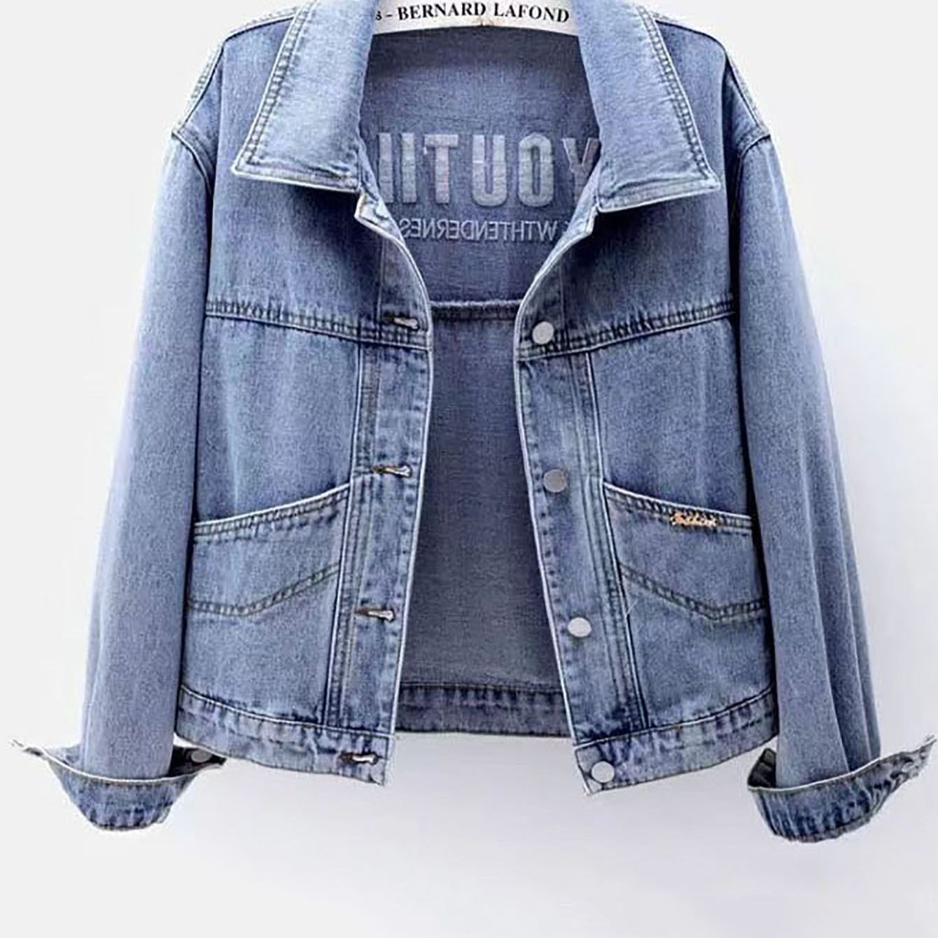 TEMU 여성 봄가을 긴팔 데일리 캐주얼 자수 쇼트 데님 재킷 상의 루즈핏 패션 부드럽고 편안한 포켓 숏 청자켓 코트 슬림소녀 SLIM GIRL
