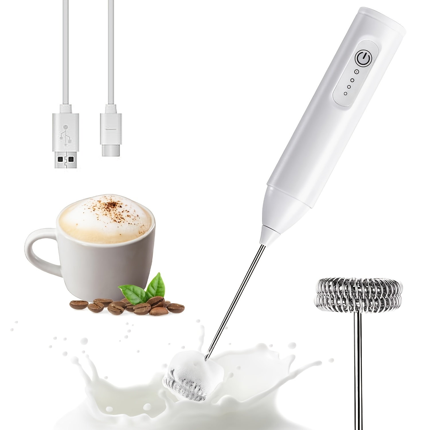 TEMU 3단계 USB 충전식 우유 거품기 핸드헬드 | 스테인리스 라떼 휘스크 | 휴대용 커피 거품기, 아이스커피, 밀크쉐이크용 | 할로윈 크리스마스 선물 | 화이트/블랙/그린, 에르고노믹 손잡이, 슬림 디자인, 내구성 플라스틱, 다중 속도 조절, 바리스타 도구, 주방 가제트