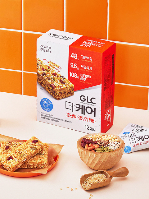 [빙그레] 빙그레 GLC 더케어 고단백 영양강정바 480g (24입) / 에너지바 영양간식 견과바 저당간식