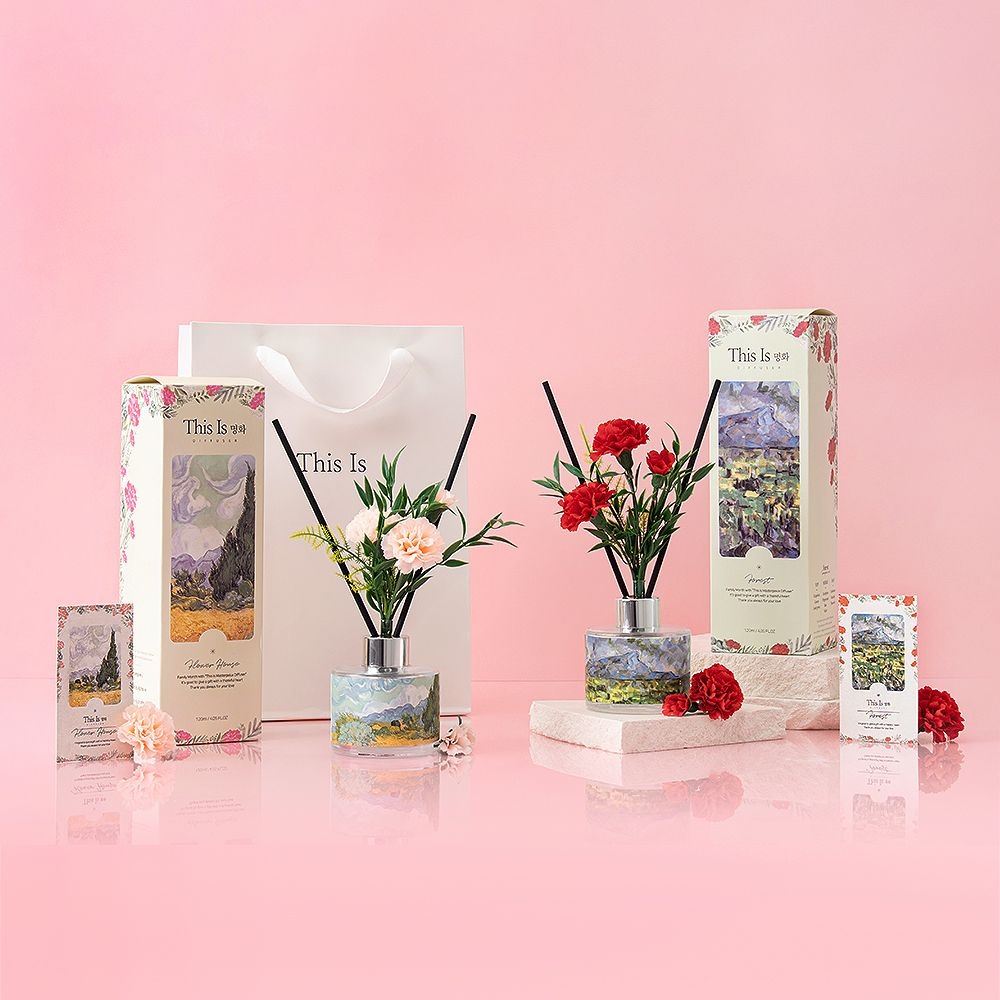 1+1 가정의달 명화의향기 카네이션 선물 디퓨저 120ml+향기감사카드+쇼핑백 세트