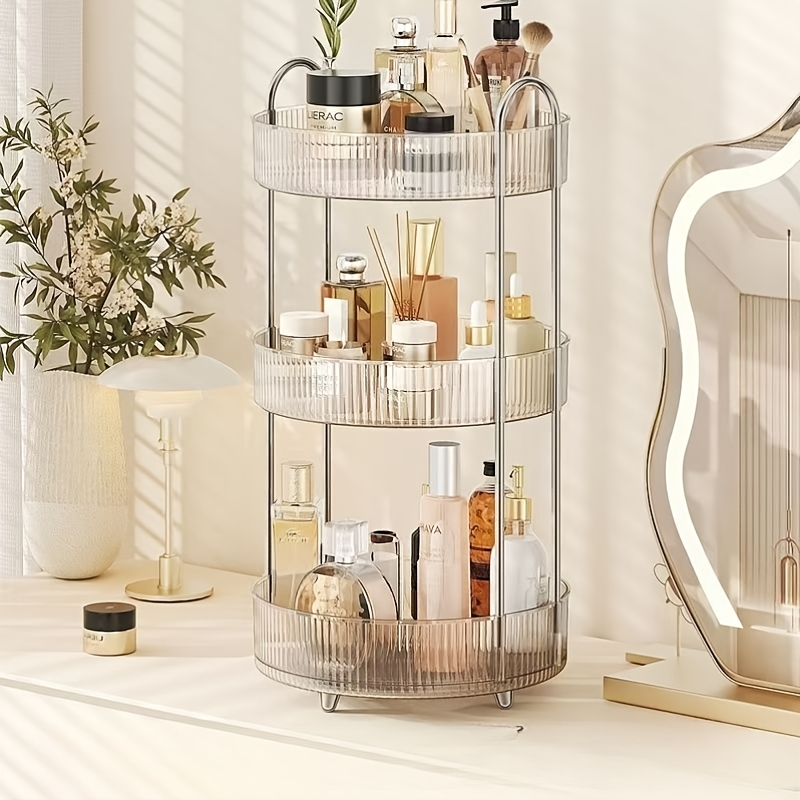 TEMU 1pc 우아한 회전형 다층 보관 랙 - 화장품, 향수, 보석 및 주방 향신료를 위한 투명 플라스틱 데스크탑 정리함 - 홈 데코, 데스크 스토리지 정리용 원형 구획이 있는 디자인|향수