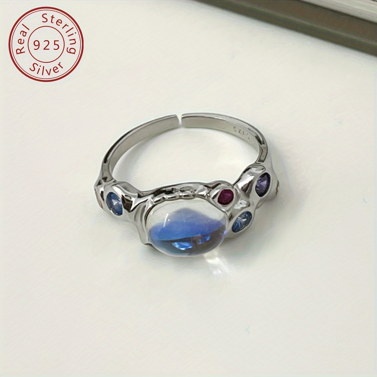TEMU 925 실버 보석 문스톤 반지, 냉담한 개성, 가벼운 고급스러운 선배 느낌, 여성의 일상 파티 착용에 적합, 선물용 선택 액세서리