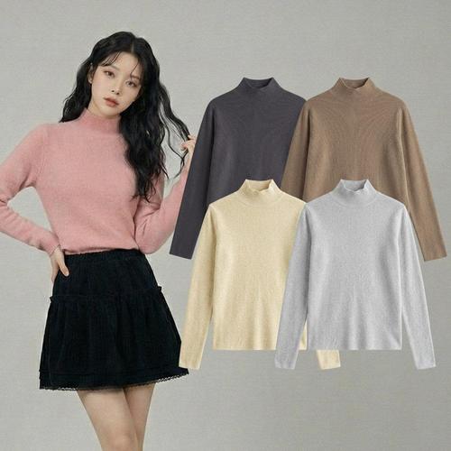 베이뮤 여성 니트 터틀넥 하이넥 목폴라