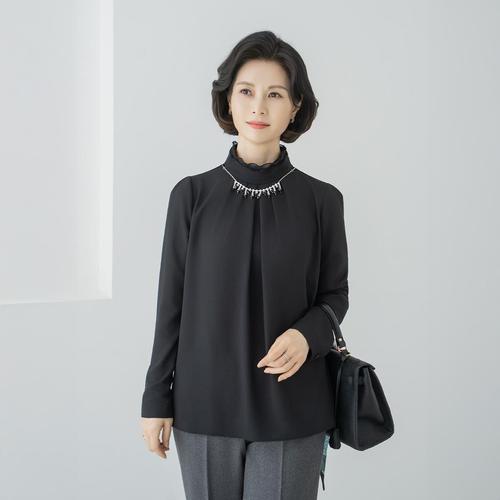 엄마옷 마담4060 검은진주핀턱블라우스-QBL2509071-