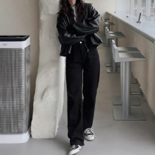 [다잇템_패션]여성용 중간 검정 가죽 바이크 자켓